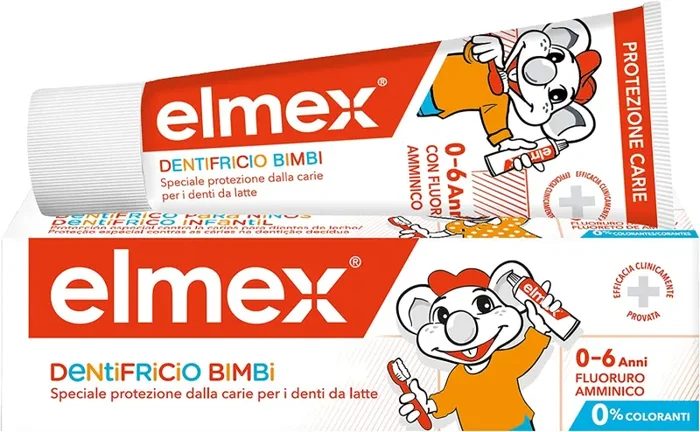 - Il dentifricio elmex BImbi ha una speciale protezione dalla carie e contiene 1000ppm di fluoruro, che è stato raccomandato dagli esperti
