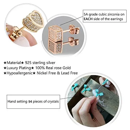 EME – Orecchini a perno da donna in argento Sterling 925, con Oro Rosa