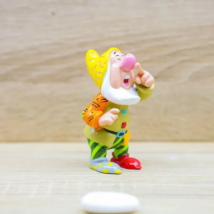 Romero Britto reinventa Eolo, questo classico personaggio di Biancaneve e i sette nani con un’infusione di motivi luminosi, audaci e colorati. Trova in questa collezione Insegnante, Dopey, Sneezy, Sleepy, Grumpy, Happy e Shy. Ogni statuetta Disney by Britto, decorata in stile pop art dall’artista internazionale Roméro Britto, è realizzata in resina dipinta a mano con finitura laccata e lucida. Confezionata in una scatola regalo.