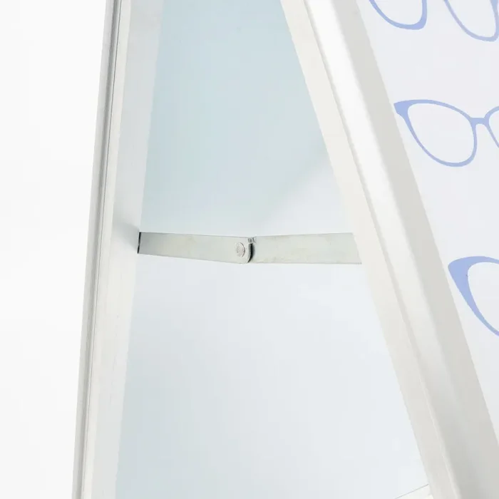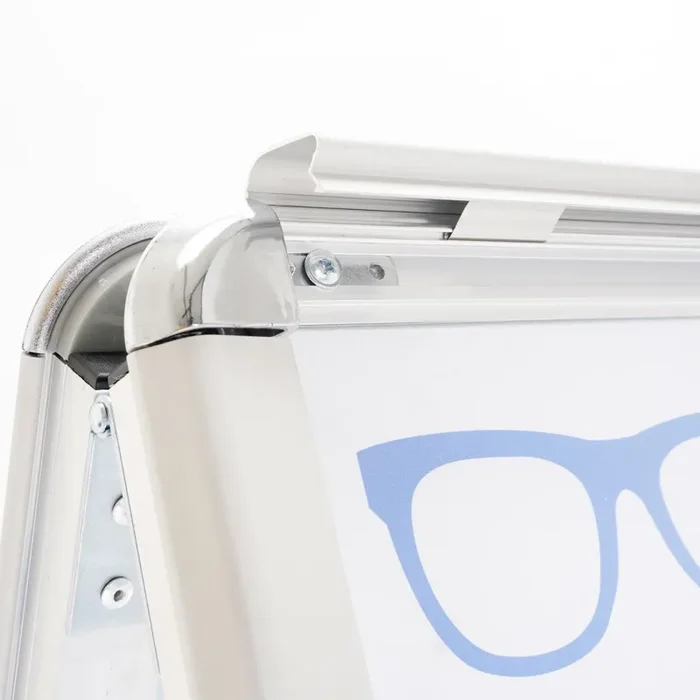 Questa lavagna a cavalletto bifacciale per esterni è realizzata in alluminio, rendendola leggera ma resistente alle intemperie. Dotata di molle anti-vento e una base zavorrabile con acqua o sabbia, offre stabilità anche in presenza di vento forte. È facilmente trasportabile grazie alle ruote integrate e presenta piedini su entrambi i lati per garantire una posizione stabile. Inoltre, dispone di una tasca ermetica che protegge il materiale all’interno dalla pioggia e dall’umidità. Le dimensioni del poster sono di 100×140 cm, mentre le dimensioni della struttura sono di 111,5×186,5×74 cm.