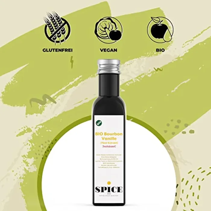 Estratto di vaniglia Bourbon BIO – 75 ml di estratto di vaniglia naturale ad alto dosaggio liquido di BIO vaniglia, SENZA alcool, essenza di alta qualità dai baccelli di vaniglia del Madagascar