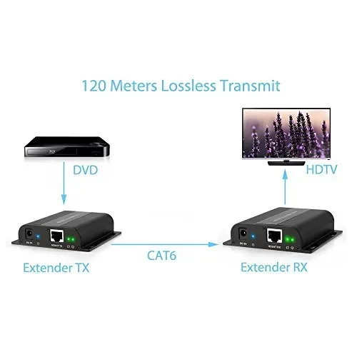 - 120m HDbitT HDMI Extender con IR segnale, Converte il Segnale HDMI al Segnale di Rete Standard e Trasferito da CAT5e/6 Cavo fino a 120 Metri
