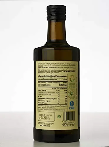 Olio extra vergine di oliva EXTRA Picual Early Harvest 500 ml Olio extravergine di oliva di prima spremitura a freddo, raccolta precoce e olive della varietà picual. Intensi aromi fruttati verdi che ricordano la frutta fresca, il pomodoro, il carciofo e la buccia di banana verde. Dolce e setoso all’inizio, si apre con sentori di erba e noci, dando vita a un olio complesso e molto armonico. Leggermente amarognolo e un finale piccante molto caratteristico di un olio fresco e di personalità. EXTRA PICUAL è la massima espressione di un olio extravergine di oliva della varietà picual.PREMI 2019 ✅ Medaglia d’oro al Concorso mondiale dell’olio d’oliva del NYIOOC 2019 ✅ Medaglia d’oro ai concorsi internazionali dell’olio d’oliva di Londra 2019 ✅ Medaglia d’argento ai vincitori del premio OLIVE JAPAN 2019