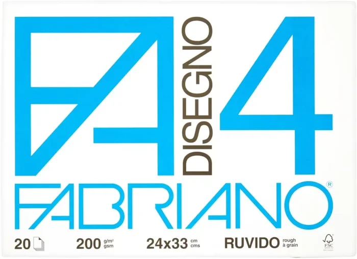 Fabriano F4 05000597, Album da Disegno, Formato 24 x 33 cm, Fogli Ruvidi, Grammatura 200gr/m2, 20 Fogli