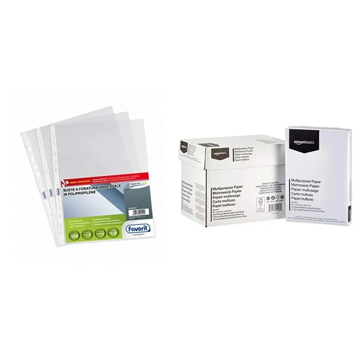 • Le buste con fori (o carpette) sono ideali per utilizzo intensivo in ufficio, casa e scuola, la tua cancelleria sempre a portata di mano, accessori indispensabili per l’archiviazione di documenti in raccoglitori a 2, 3 e 4 anelli, a leva e nelle cartelle
