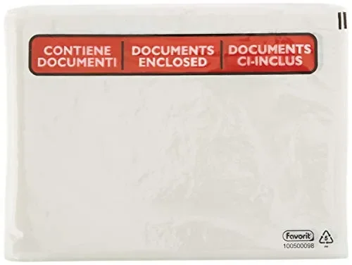 Buste adesive Favorit per spedizioni linea Speedy Doc realizzate in polipropilene a bassa densità trasparenti. Adesivo multi- superficie nella parte superiore. Disponibili nei più comuni formati adatti alla spedizione. Inserimento dall’alto con speciale chiusura che evita la fuoriuscita dei documenti.