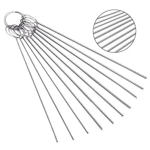 - DIVERSI DIAMETRI: Questo set di cavi viene fornito con 13 diversi diametri, appositamente progettati per pulire i piccoli getti e passaggi di carboidrati da tutto lo sporco.