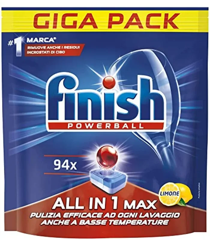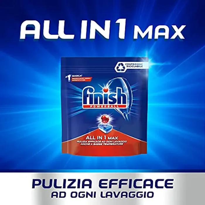 - LA POWERBALL – grazie alla tecnologia Finish Powerball, le pastiglie per lavastoviglie donano pulizia al primo lavaggio, anche a basse temperature