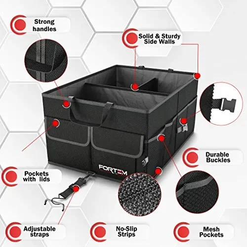 FORTEM Organizer, Contenitore per Bagagliaio e portabagagli Auto; Borsa portaoggetti per Cofano e Sedile Posteriore; capiente, Pieghevole, Resistente e Antiscivolo