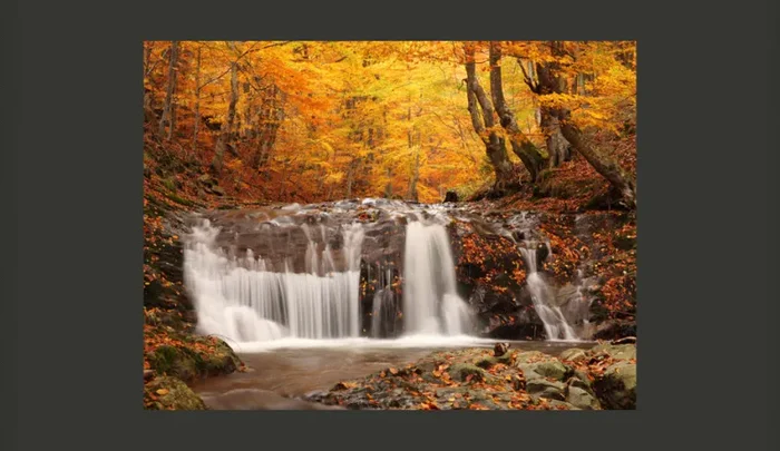 Fotomurale – Autumn Landscape : Waterfall In Forest 350X270Cm Carta Da Parato Erroi