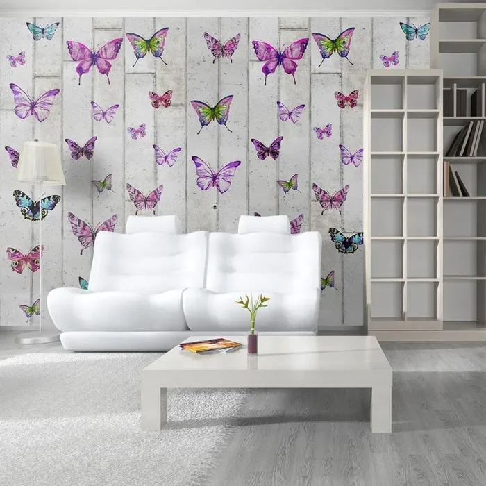 Una durevole, resistente all’acqua ed ai graffi fotomurale sulla fliselina ‘Butterflies and Concrete’ per attaccare sulla parete. Fotmurale Butterflies and Concrete con un tema ispiratore sarà un’aggiunta impressionante a tutta la stanza. Tessuto non Tessuto sono montati con la colla. Può essere montato in ogni stanza, anche il bagno o in cucina. Carta da parati non tessuta, pelo lucido. 100% fliselina nasconde le imperfezioni del muro. Crea uno strato isolante contro il freddo e permette ai muri di respirare. Stampa impermeabile è molto resistente.