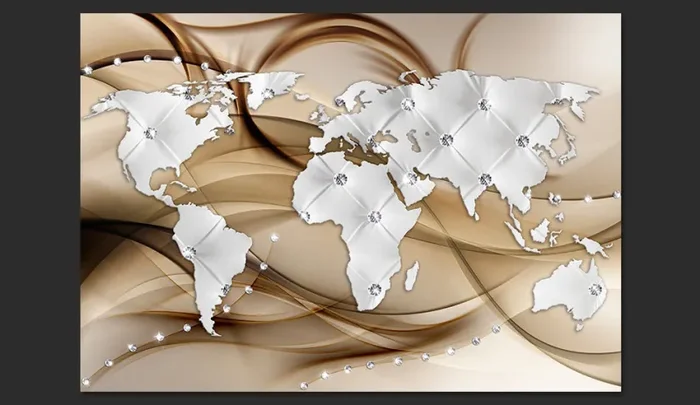 Fotomurale – World Map – White u0026 Diamonds Carta Da Parato Erroi