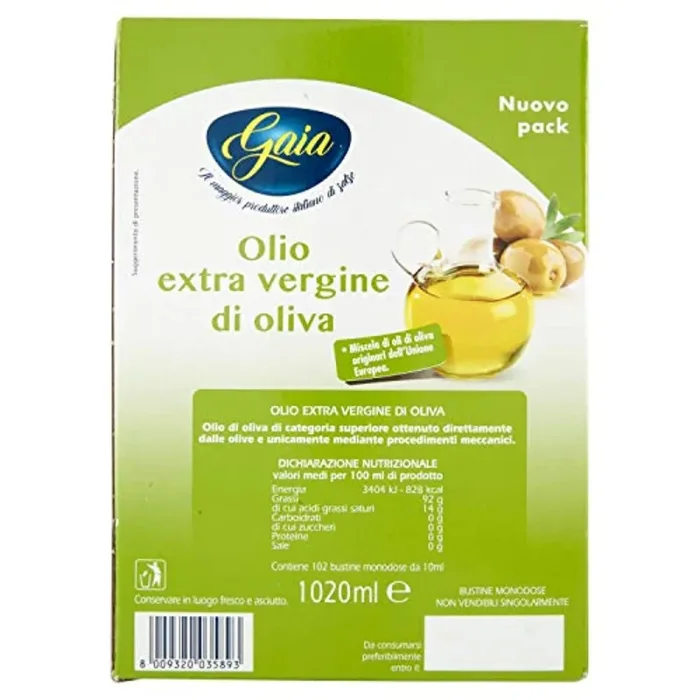Gaia Ga25810 Olio Extra Vergine in Bustine Monodose – 102 Bustine da 10Ml