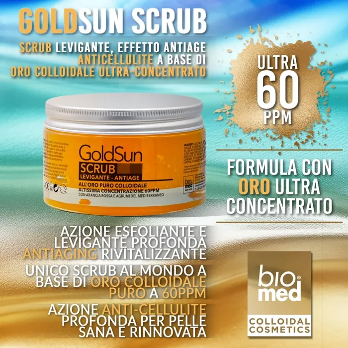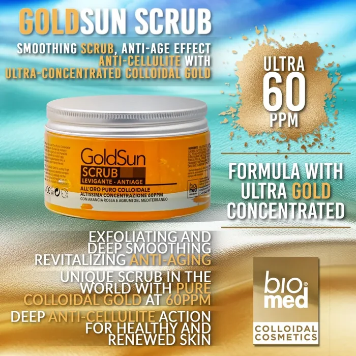 GOLDSUN SCRUB LEVIGANTE ALL’ORO ATTIVO BIOMED – ANTICELLULITE, ANTI-AGE 200ml In saldo