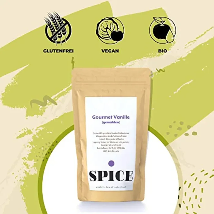 Gourmet Vanilla ground (15g) – 60% Bourbon Vanilla & 40% Vanilla Tahitiensis, polvere di vaniglia di alta qualità (bacche di vaniglia macinate), origine: Madagascar & Papua Nuova Guinea