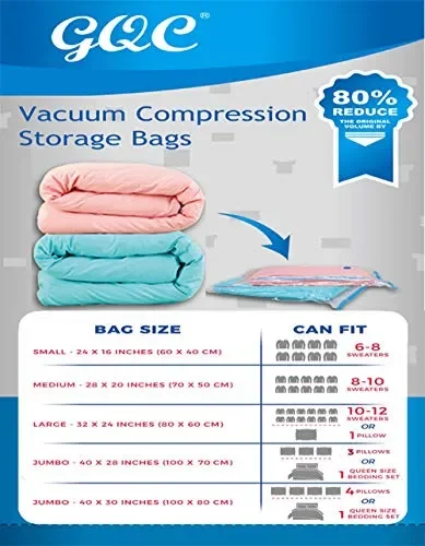GQC 8 Pezzi Sacchetti Sottovuoto Salvaspazio Riutilizzabili,4 Media( 50 x 70 cm),2 Grande( 60 x 80 cm),2 Ultra-grande (70 x 100 cm) , Per Abiti,Cappotti,Piumoni,Coperte,Lenzuola,Vestiti,Cuscini