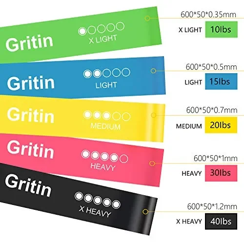 Gritin Elastici Fitness, [Set di 5] Banda Verde – Blu – Giallo – Rosa – Nero