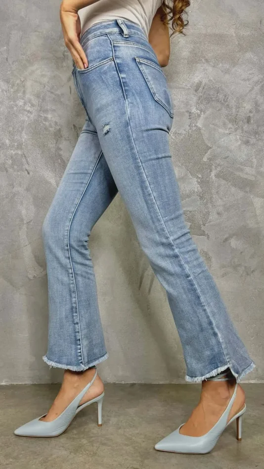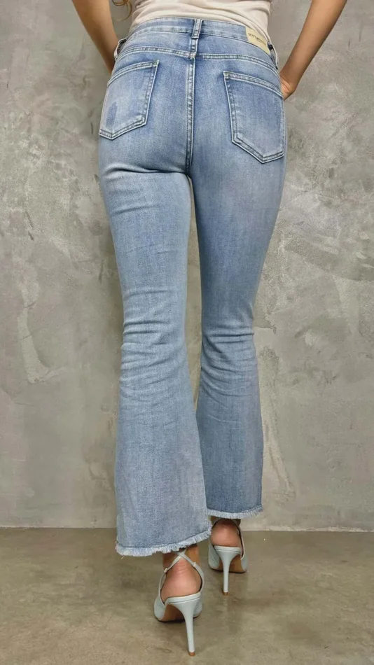 Jeans trombetta elasticizzato dal lavaggio chiaro, push up, morbido e super confortevole.
