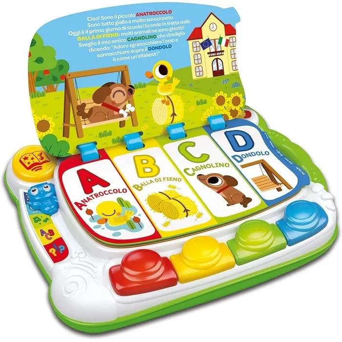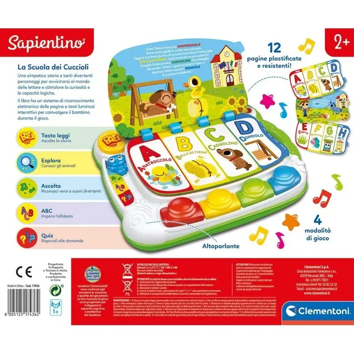 La scuola dei cuccioli per bambini Clementoni sfoglia le divertenti e colorate pagine del libro dei cuccioli e accompagnali fra i banchi di scuola con questo libro di sapientino sarà divertente imparare l’alfabeto ed il verso degli animali.