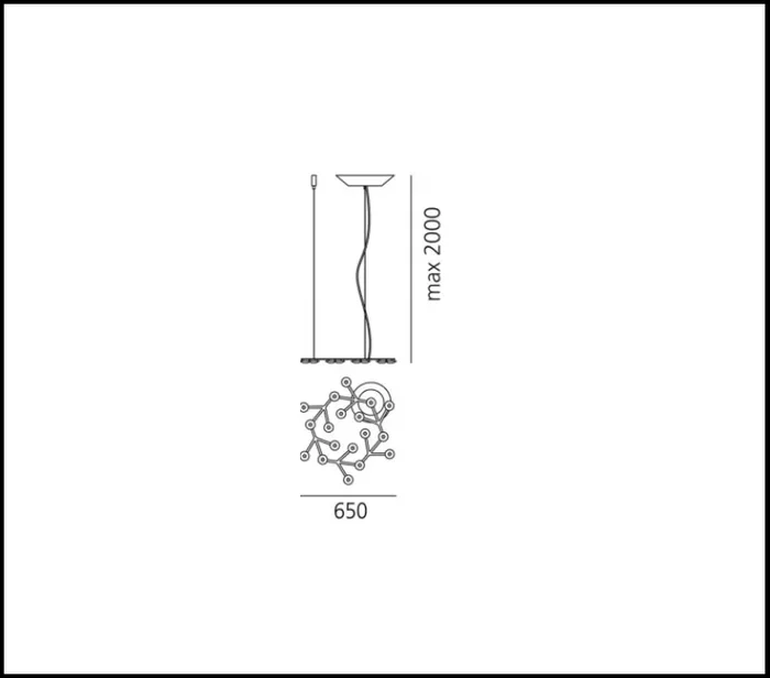 Lampada a sospensione con struttura in alluminio verniciato. Ogni Led è dotato di lente in metacrilato trasparente e di porta-lente in metacrilato satinato.