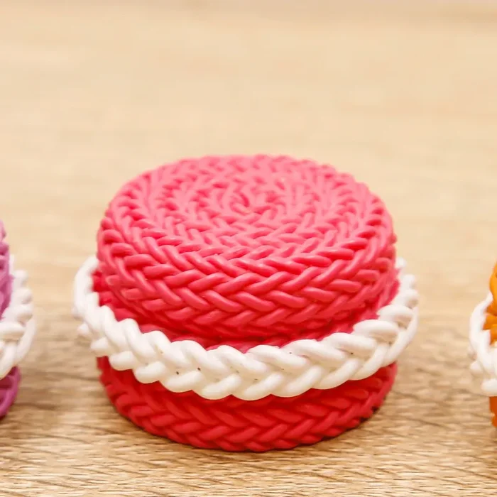 Macarons in resina in Cinque colori Assortiti: Blu, Viola, Rosa, Arancio e Giallo.