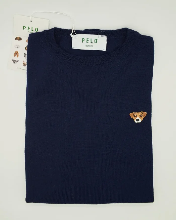 Maglione Girocollo Ricamato Jack Russel Blue – Pelo Foundation