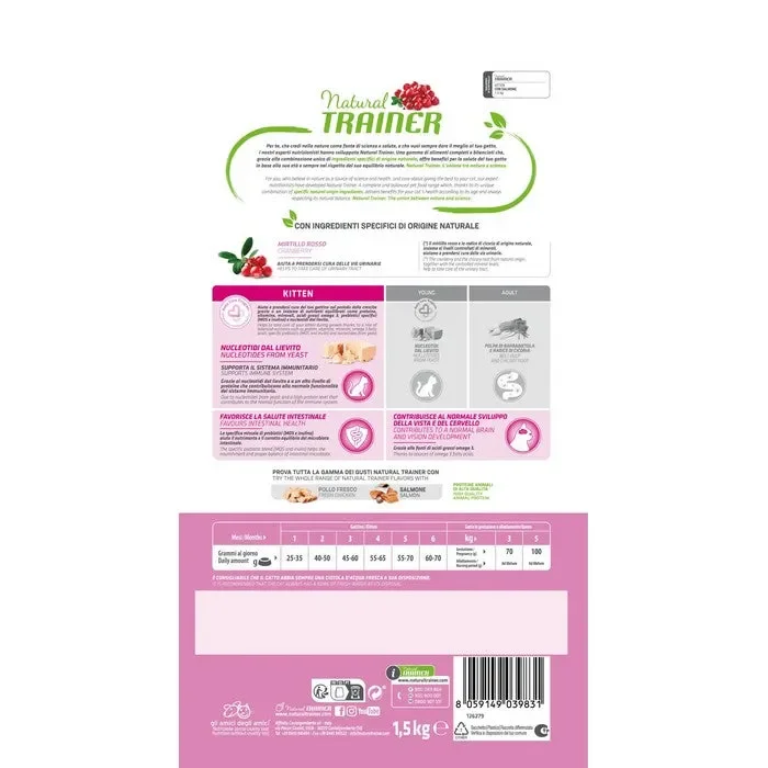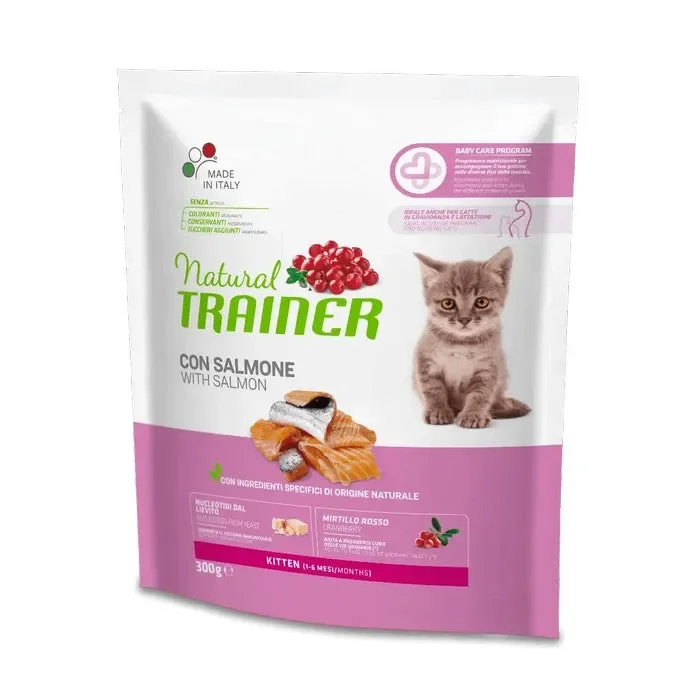 Natural Trainer Cat Kitten con Salmone è un alimento completo ed equilibrato per gattini da 1 a 6 mesi d’età. Ideale anche per gatte in gravidanza o in allattamento.