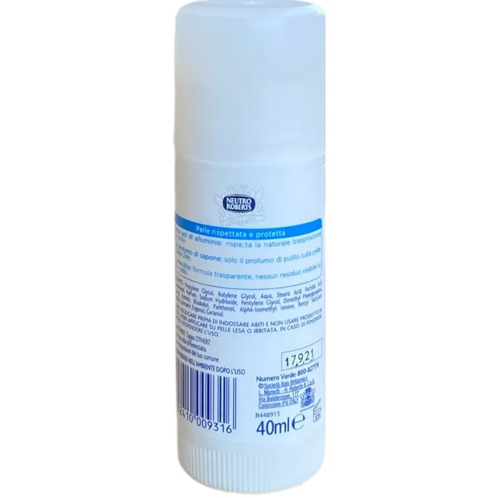 Il **Neutro Roberts Deodorante Stick Delicato Extra Protezione con Profumo di Sapone da 40 ml** è un deodorante stick progettato per offrire una protezione efficace contro il sudore e cattivi odori. Questo prodotto ha alcune caratteristiche specifiche: