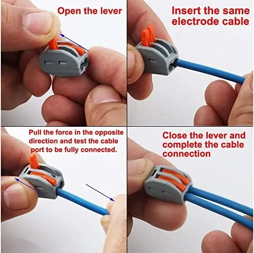 novità nr 10 morsetti a leva fast apri e chiudi 2 vie per cavi da 0,75 a 2,5 mm