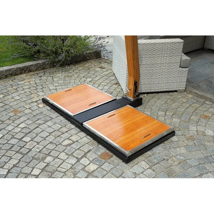 L’ombrellone antivento decentrato quadrato con palo laterale permette massima libertà per arredare gli spazi esterni con set pranzo o set relax da giardino.