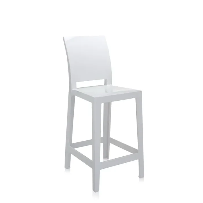 One more e One more please sono gli sgabelli della famiglia “Ghost”, in due diverse altezze – 65 cm o 75 cm, e schienali – ovali o squadrati, agili, pratici, colorati e resistenti per ogni utilizzo habitat e contract.