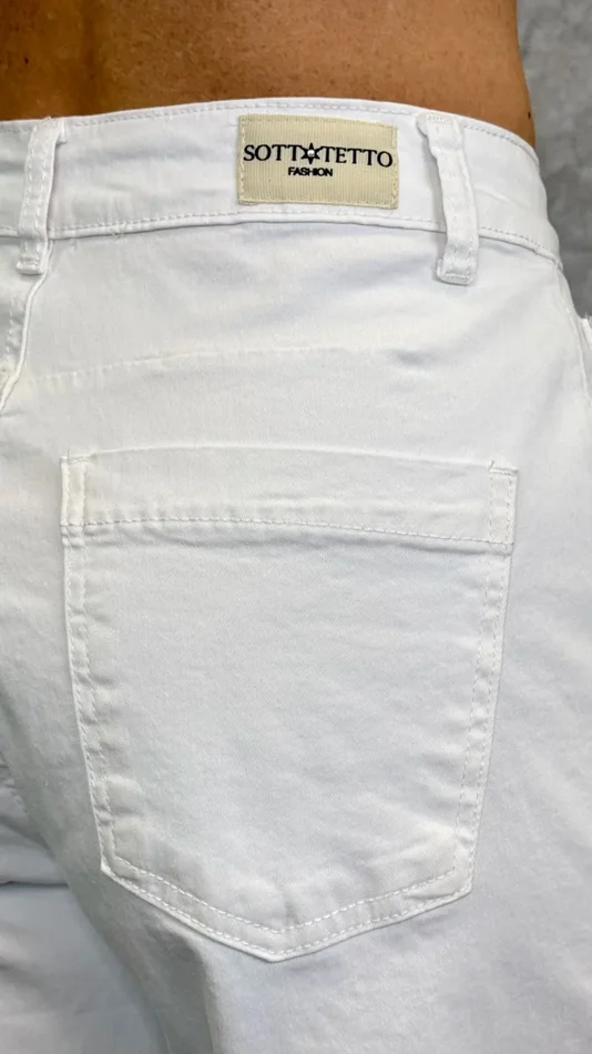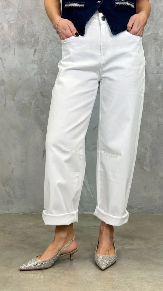 Pantalone in cotone elasticizzato con risvolto, morbido sui fianchi, push-up e super leggero nel fit. Il pantalone perfetto che ti accompagnerà per tutta la SS25.