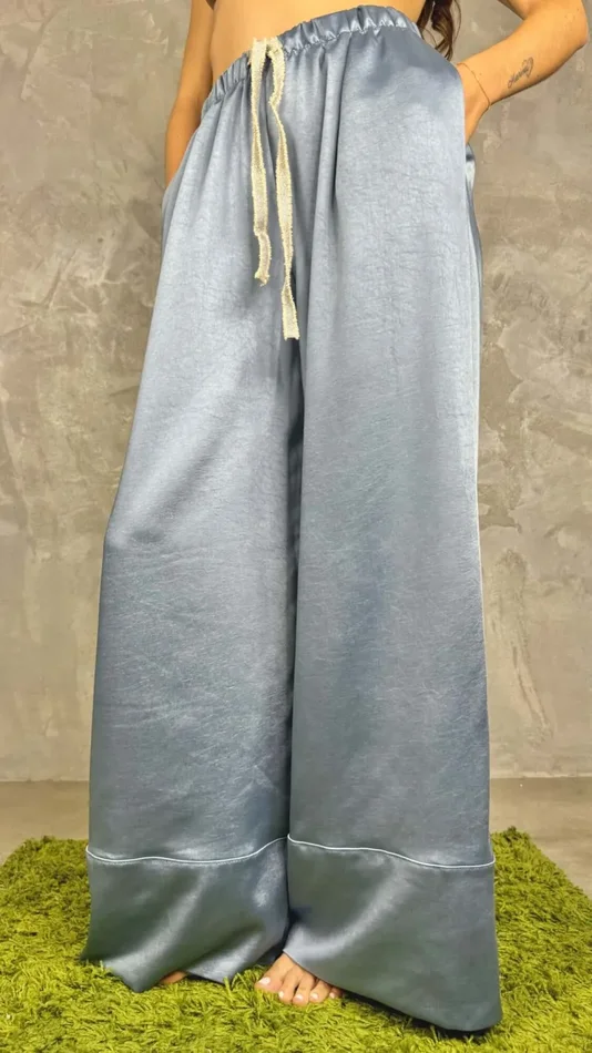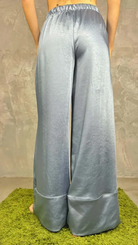 Pantalone palazzo a tinta unita con elastico in vita e coulisse lurex. Perfetto e chic per un completo raffinatissimo