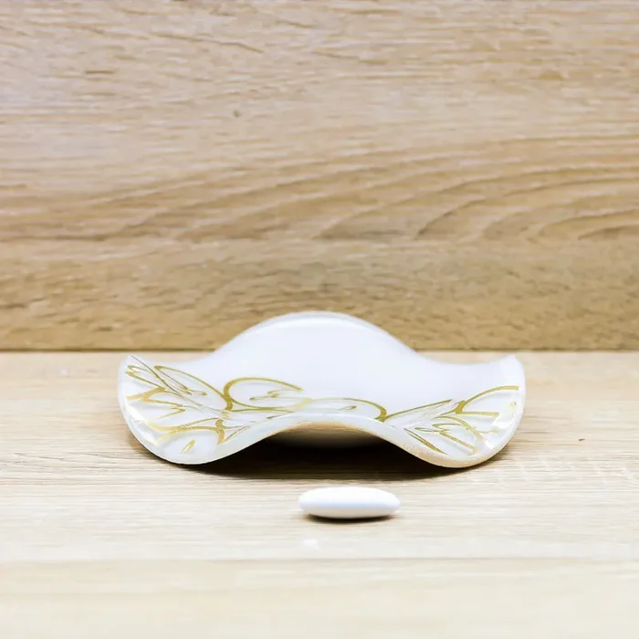 Piatto ondulato in vetro e firme in oro, firmato Gattinoni.