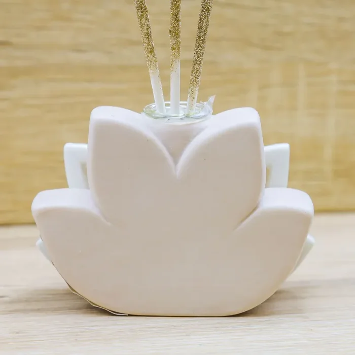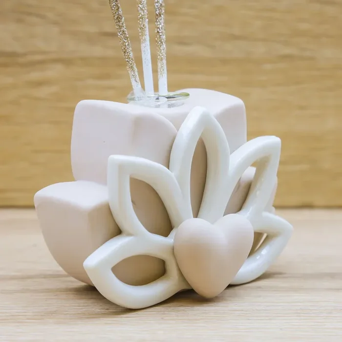 Profumatore a forma di fiore di loto tortora e bianco e cuoricino tortora, firmato Claraluna.
