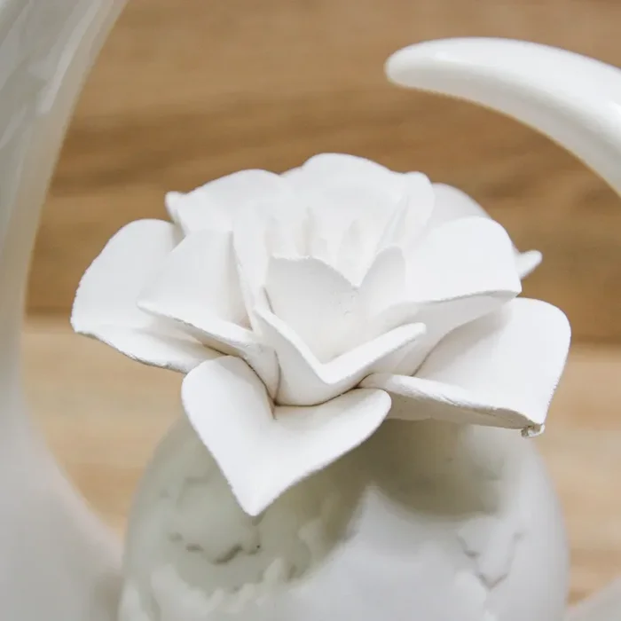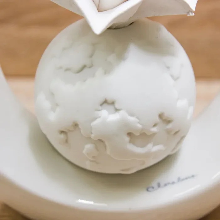 Profumatore bianco con decoro di un mappamondo e fiore per espandere la profumazione, firmato Claraluna.