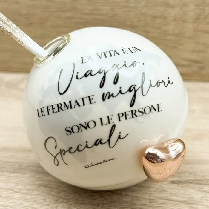 Profumatore a forma di mappamondo con cuoricino color oro rosa e con frase “La Vita è un Viaggio.Le fermate migliori sono le persone Speciali”, firmato Claraluna.