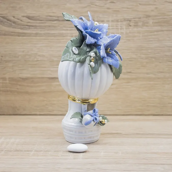 Profumatore Mongolfiera Azzurra con Stelle di Natale Porcellana di Capodimonte