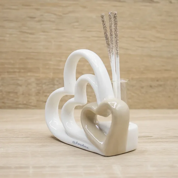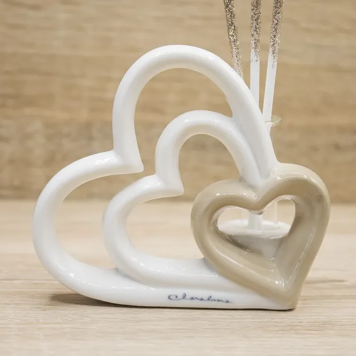 Profumatore a forma di triplo cuore bianco e tortora, firmato Claraluna.