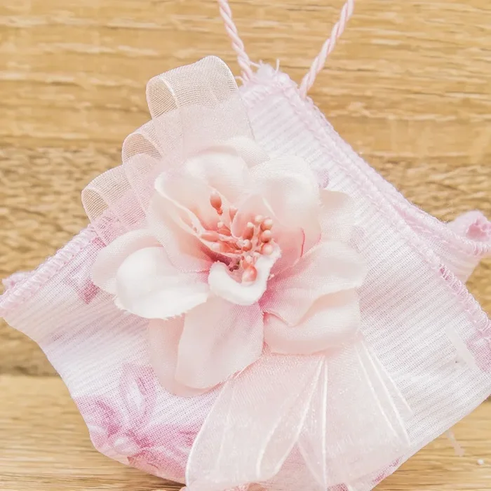 Sacchettino con Fiocchi, Fiore Rosa e Sali Profumati La Vie en Rose