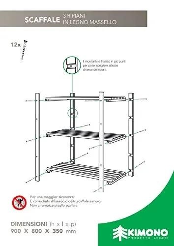SCAFFALE ABETE 3 RIPIANIMM 900X800X350