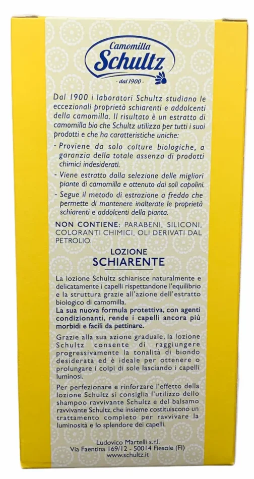 La **Schultz Lozione Schiarente 200 ml** è un prodotto utilizzato per schiarire i peli superflui o per ottenere un effetto schiarente sui capelli. Ecco alcune delle caratteristiche e indicazioni principali per questo tipo di prodotto: