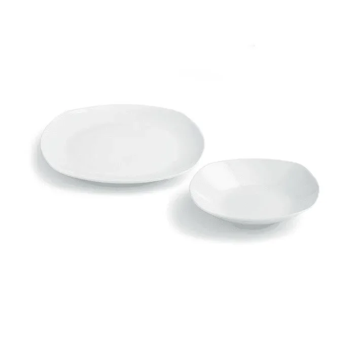 Servizio 12 piatti quadrati in porcellana bianca – Splendor