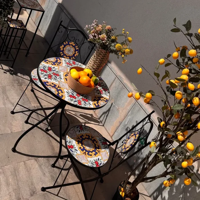 Set tavolo con sedie pieghevoli in metallo con mosaico – Caltagirone