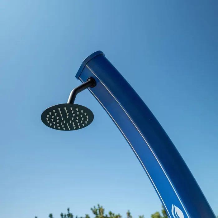 doccia blu a energia solare in alluminio, ottima per utilizzo in luoghi pubblici hotel, campeggi, villaggi turistici, stabilimenti balneari. Consigliata anche per un uso privato