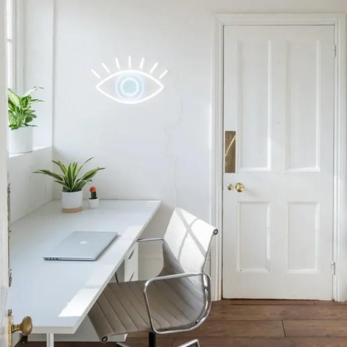 Scritta a neonled con pannello in plexiglass infrangibile trasparente.