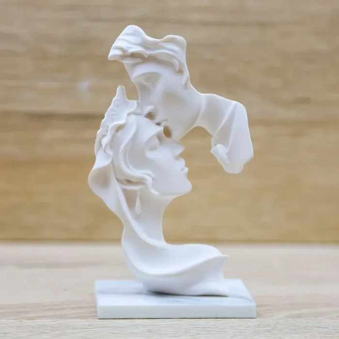 Statuina di una coppia di sposi innamorati in un bacio romantico e base marmo, firmato Giovinarte.