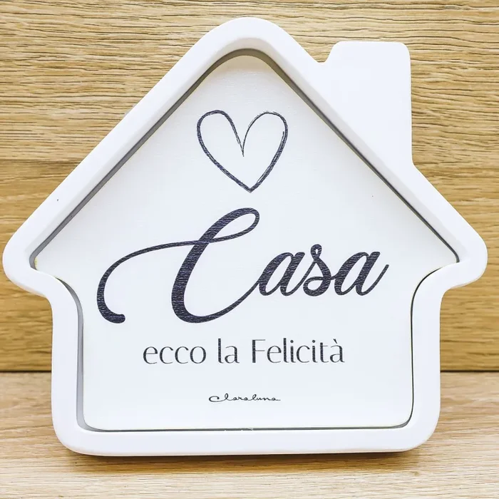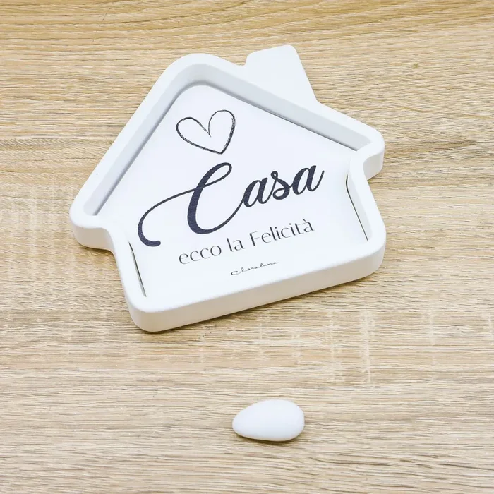 Svuotatasche a forma di Casa con frase: “Casa ecco la Felicità”, firmato Claraluna.