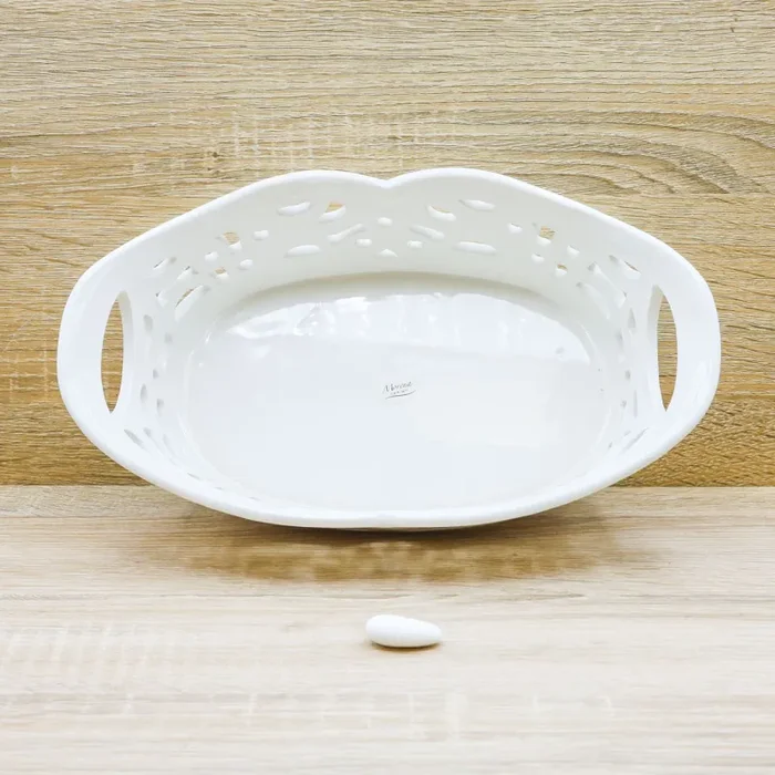 Coppa / Svuotatasche in porcellana bianca traforato, firmato Morena.