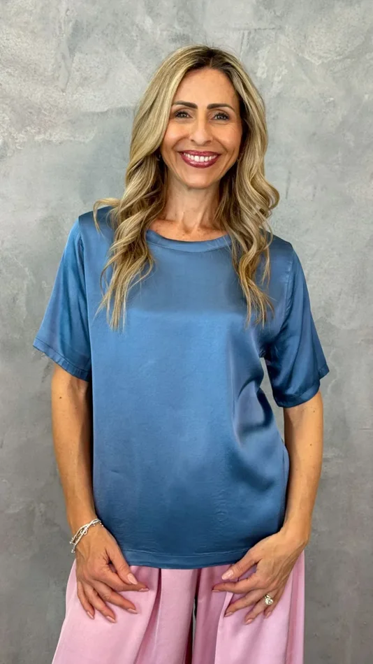 T-shirt tinta unita mezza manica in viscosa, chic e femminile, perfetta abbinata al pantalone con elastico in vita dello stesso tessuto.
